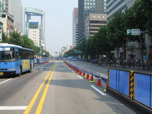It would not be fair to single out Seoul's planners for having taken this approach. Nearly every other city in the world has gone through a similar period of road expansion at the expense of the pedestrian environment, and many continue to do so. Seoul went through this period of expansion at a time when large swaths of land were being rebuilt from war damage or newly developed to accommodate refugee influx (especially south of the river). I think Koreans are particularly quick to assimilate foreign technology and organizational techniques, often taking such ideas to their logical extreme. Much of modern Seoul was a tabula rasa, primed to adapt the latest planning techniques from Western cities, yet ignorant of the backlash that massive infrastructure projects had already prompted in these cities. It's only recently that awareness has caught up.