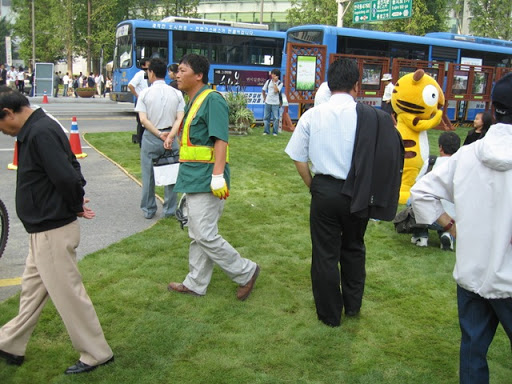 There's no single explanation for why Seoul contains so many super-wide arterial roads. It's sheer size and population generates huge demand for automobile roads, though this is tempered by the scarcity of parking. Many of these wide roads were established as Korea entered an industrial boom, a time when large, modern infrastructure symbolized progress and a better life. Even the unwieldy pedestrian overpasses and underground walkways were welcomed with civic pride as pragmatic solutions to increasing traffic fatalities on the automobile-dominated streets. The result was a planning culture that treated pedestrians as yet another obstacle in the path of automobile efficiency. ![]()