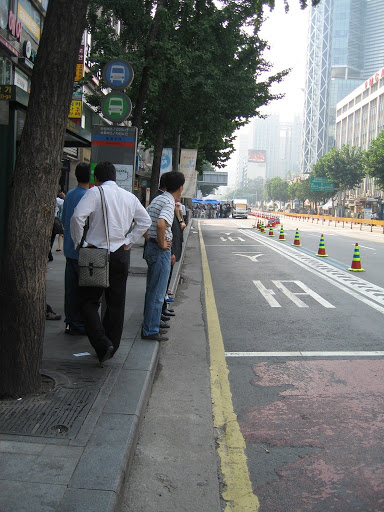 Every city contains wide streets to funnel copious amounts of cross-town traffic away from smaller roads, but Seoul takes this idea to its logical extreme. Arterial roads contain anywhere between four and eight traffic lanes in each direction. Crosswalks are few and far-between, and traffic signal cycles may stretch past five minutes. Some streets further limit path choice to pedestrian overpasses (보도육교) or underground walkways (지하보도).